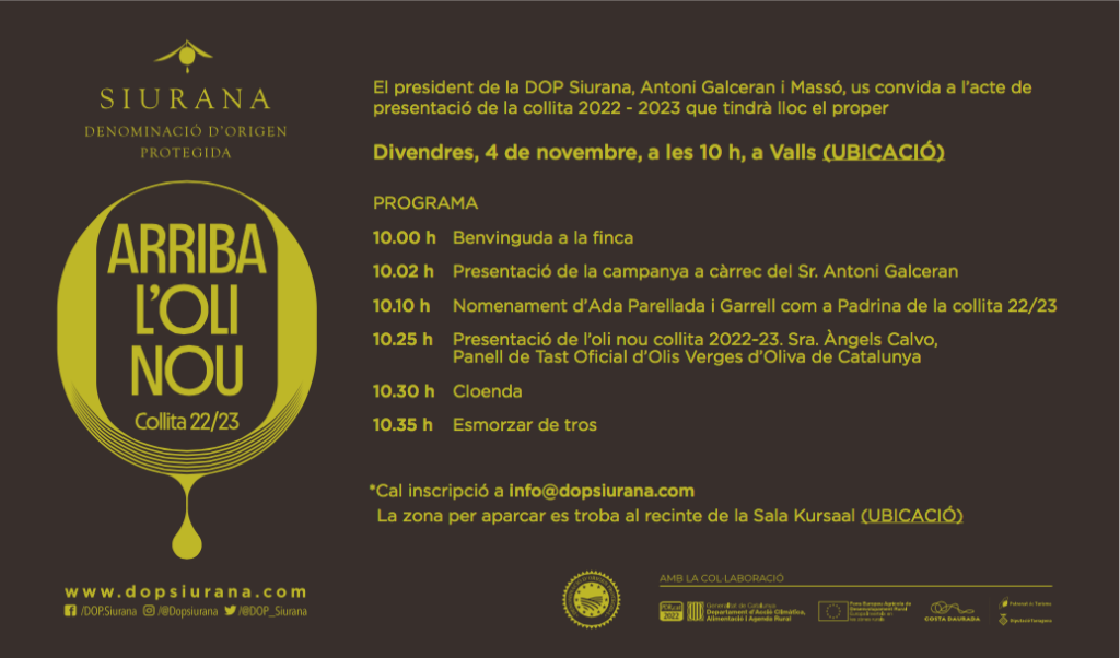 Per assistir cal fer inscripció a info@dopsiurana.com