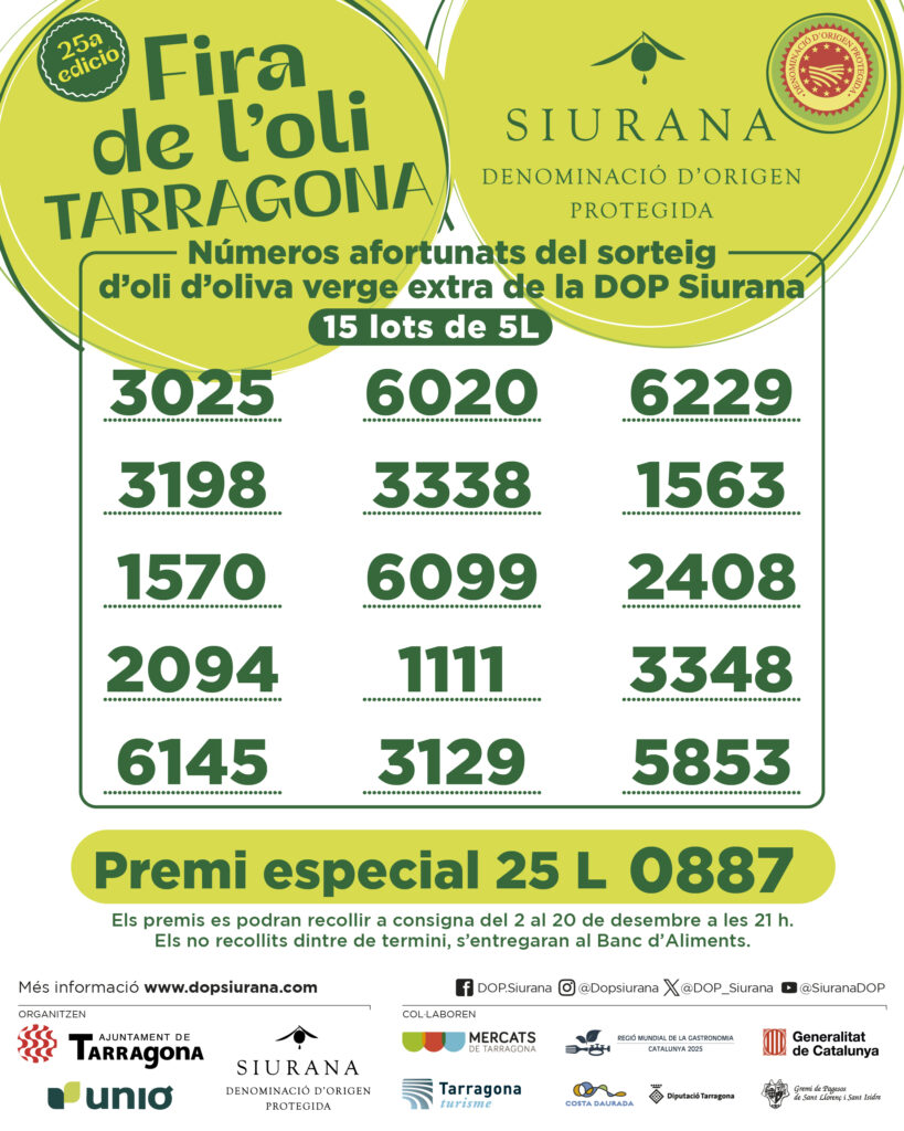 Des del consell regulador de la denominació d'origen protegida Siurana que tinc l'honor de presidir, vetllarem per garantir la qualitat de l'oli d'oliva verge extra que produeixen les nostres entitats reconegudes i els milers de productors repartits pel nostre territori, conscients que la bona feina dels pagesos i els moliners treballant la varietat arbequina produeix un producte excel·lent. No defallirem en ampliar i millorar la promoció de la marca DOP Siurana per tal d'incrementar, any rere any, la quantitat d'oli que es comercialitza amb el nostre segell de qualitat. Al mateix temps, promourem la cultura de l'oli d'oliva verge extra per arribar cada collita a més llars i consumidors finals. Esperem reeixir, en la mesura que sigui possible, en aquests bons propòsits.